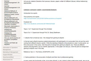 Supervision of research projects and theses in German or English, here course "E-Sports: Economics & Management" at the European University Viadrina, 2019/2020.