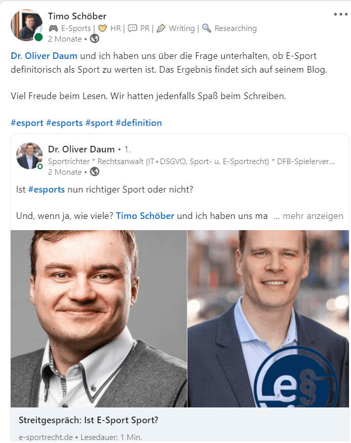 Dispute: Is e-sport a sport? on e-sportrecht.de.