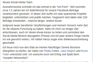 Texts, concepts and campaigns in the field of social media, here eSports Nord eV, Facebook.