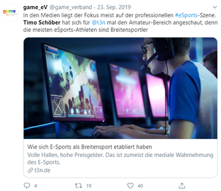 At the same time, e-sports have not yet fully arrived in mainstream society. Large parts of the population, including in Germany, are not familiar with e-sports and people without an affinity for the internet hardly have a chance to deal with e-sports.