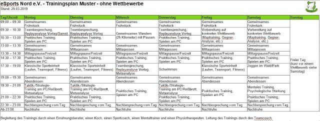Creation of documents, here training plan for eSports Nord eV