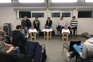 Political talks and debates, here with Jörg Hansen (Member of the Landtag), Kay Richert (Member of the Landtag) and Bryan Faller (FDP Flensburg), Flensburg, 2019.