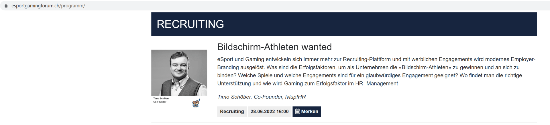 Speaker, presentation, know-how carrier, analyses, "e-sport and HR":