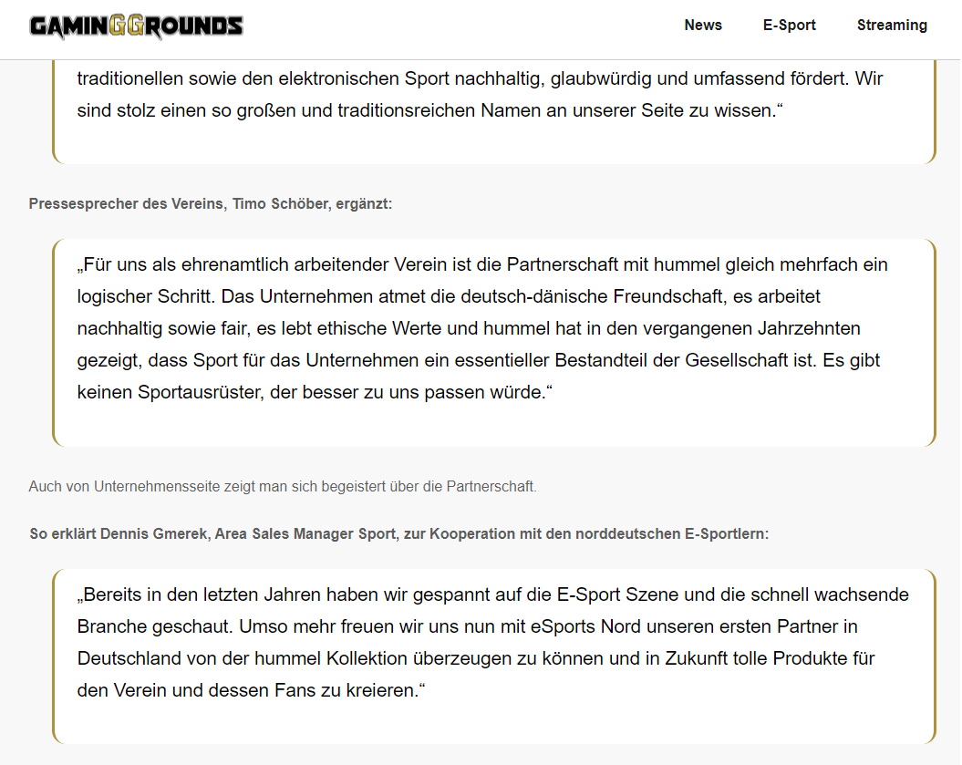 Support for partnerships, here is a press release regarding the cooperation between hummel and eSports Nord