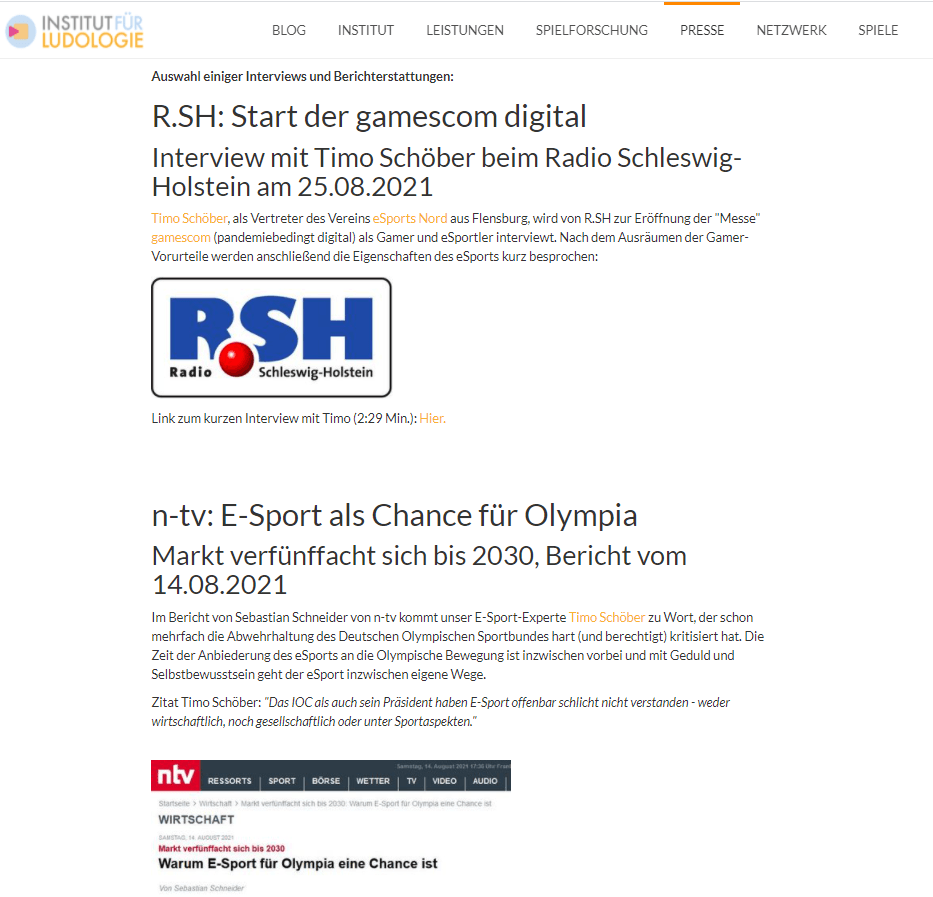 Koostöö igasuguse meediaga, siin sh:z, e-spordi teemal terve leheküljeline toimetuse töö, minu funktsioon: eSports Nord eV pressiesindaja