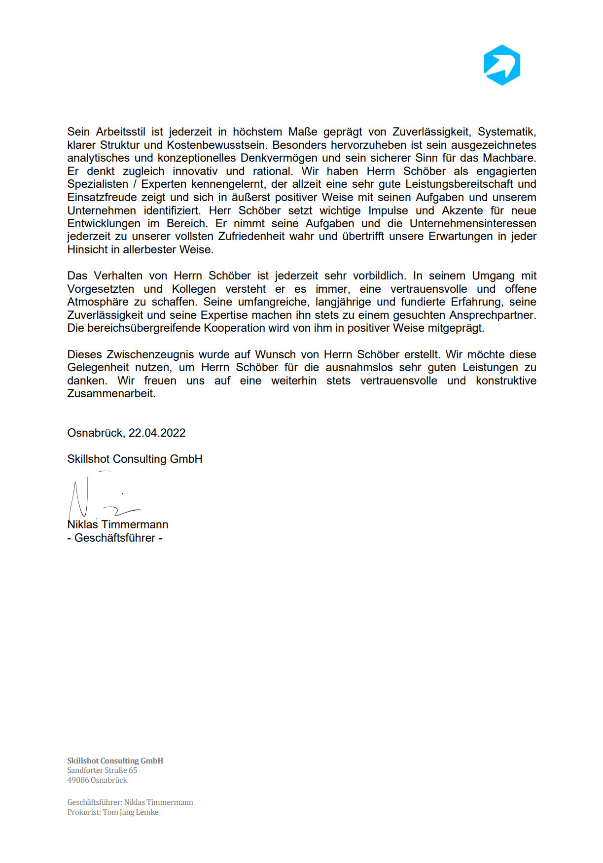 "Vrlo cijenjen kolega koji uvijek zna kako uvjeriti svojim otvorenim i kompetentnim načinom. Uvijek izvrsno pripremljen tematski i profesionalno te na pravoj poziciji u području ljudskih resursa. U području eSporta, gospodin Schöber zna kako zablistati svojim akademski rad i pripadajući istraživački rad."