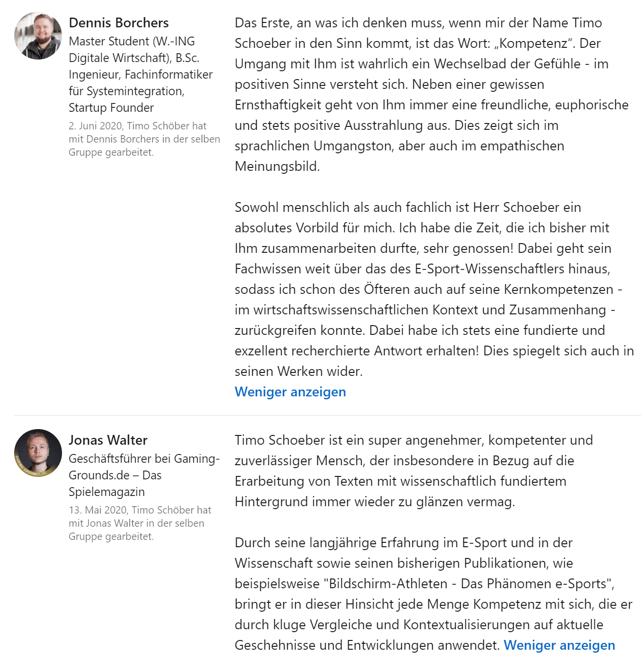 Beispiel: Inklusion und E-Sport, eigenes LinkedIn-Profil, 2021.