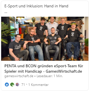 Тексты, концепции и кампании в области социальных сетей, здесь eSports Nord eV, Facebook.
