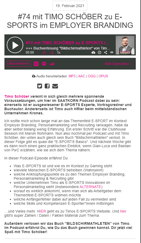 Hợp tác với các phương tiện truyền thông các loại, đây sh: z, công việc toàn trang về chủ đề thể thao điện tử của các biên tập viên, chức năng của tôi: phát ngôn viên của eSports Nord eV